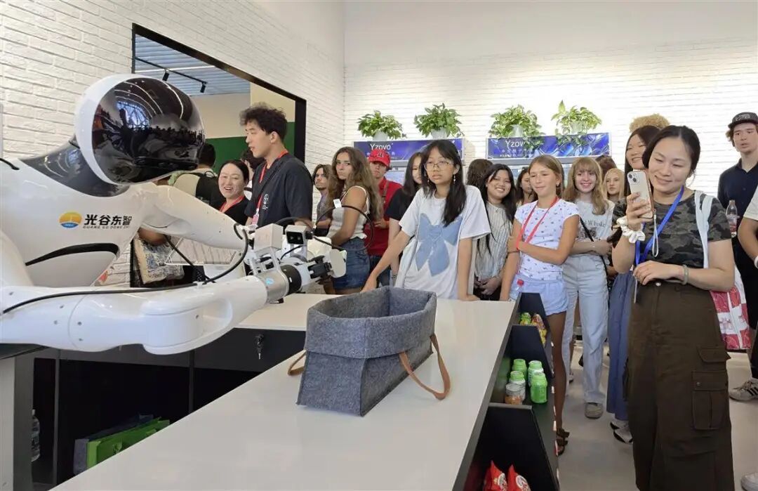 2025年7月29日上午,近百名美国“飞虎队”青少年夏令营成员走进湖北人形机器人创新中心,深入体验了人形机器人的生活应用场景,纷纷点赞湖北尖端机器人技术成果