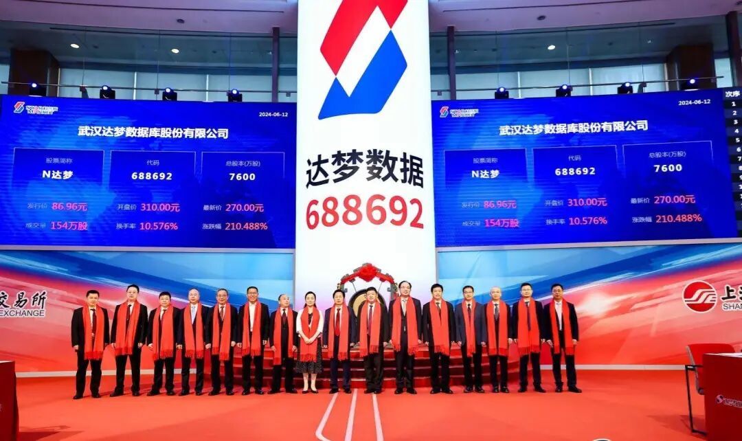 2024年6月12日,随着清脆的开市锣声,武汉达梦数据库股份有限公司在上海证券交易所上市,正式登陆科创板,成为“国产数据库第一股”