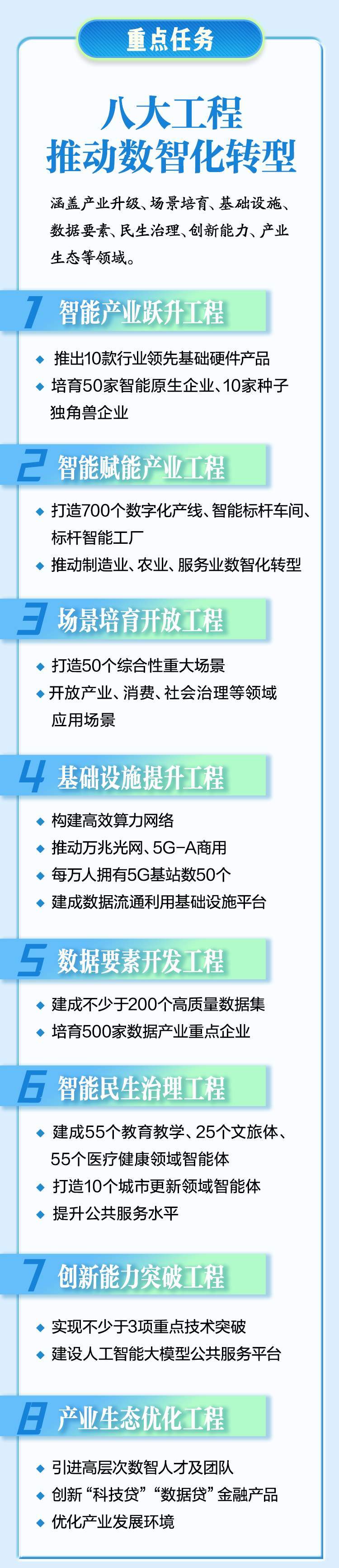推动数智技术赋能实体经济发展。在制造业领域,将加快建设智能产线与工厂,实现数智化转型;在农业领域,着力打造智慧农业场景,实现高产高效;在服务业领域,则聚焦金融、物流、法律等重点行业,落地一批服务业智能体,促进产业效率与服务能力提升。